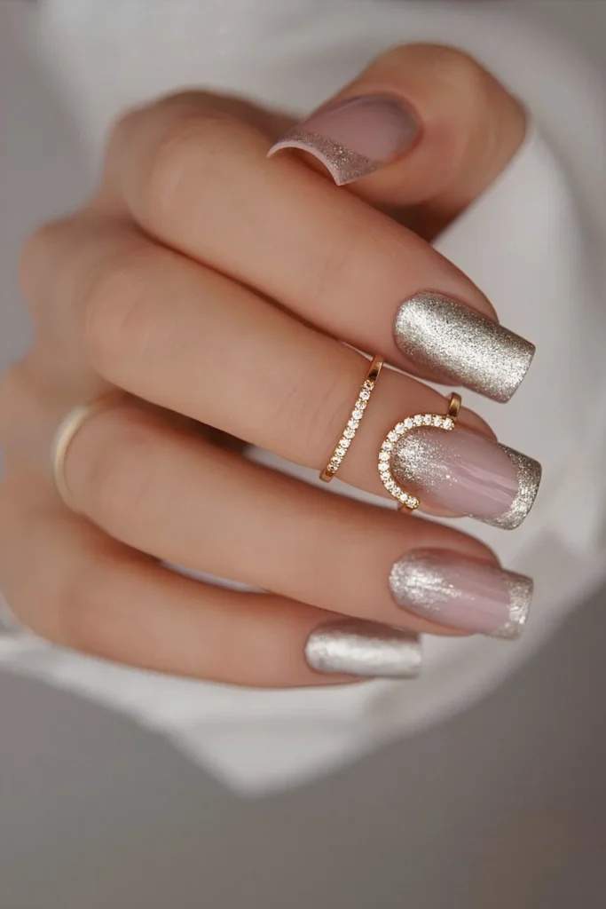 Pro tip: Choose silver or holographic glitter for a subtle shine that complements the white tips.