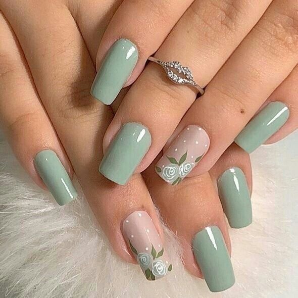 Spring is literally the season of flowers, so why not bring some blooms into your nail art? A soft green base topped with tiny floral designs (think daisies or cherry blossoms) can be incredibly cute and cheerful.